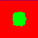 Beide Automaten haben die Größe 128X128. Ein Pixel ist grün