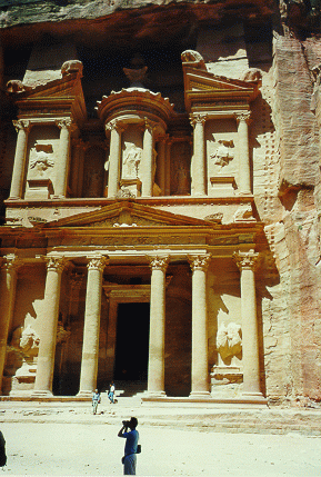 einem Canyon am Eingang von Petra auf Al-Khazaneh das treasury.